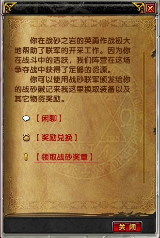 在这里获得 战沙奖章 就是最低级的要求物品,没有属性